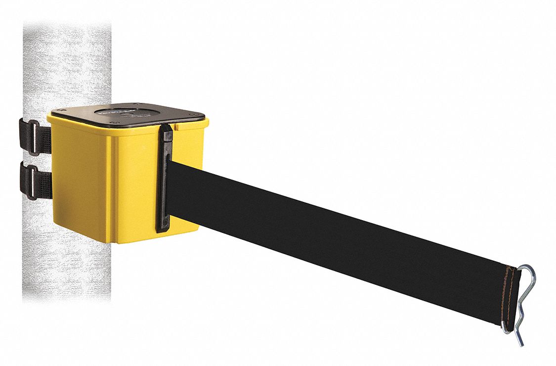 RETRACTABELT, Black, Yellow, Retractable Belt Barrier 48VY20WH412YW20BKV Grainger